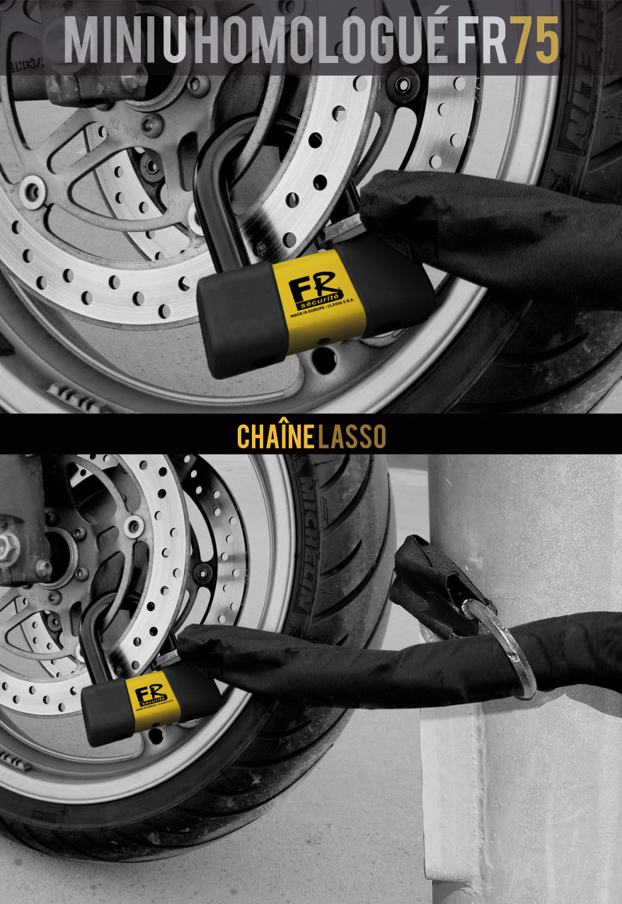 Système DUO : Mini U FR75 homologué SRA + chaîne lasso standard 10.120L ø10. |