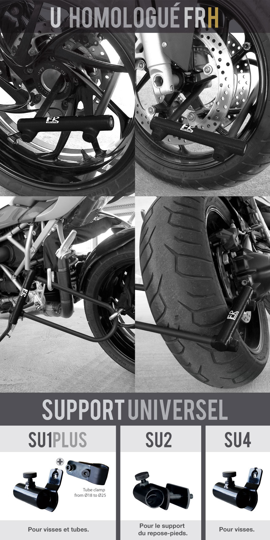 Se range avec support (SU1PLUS-SU2-SU4) ou sous la selle. |